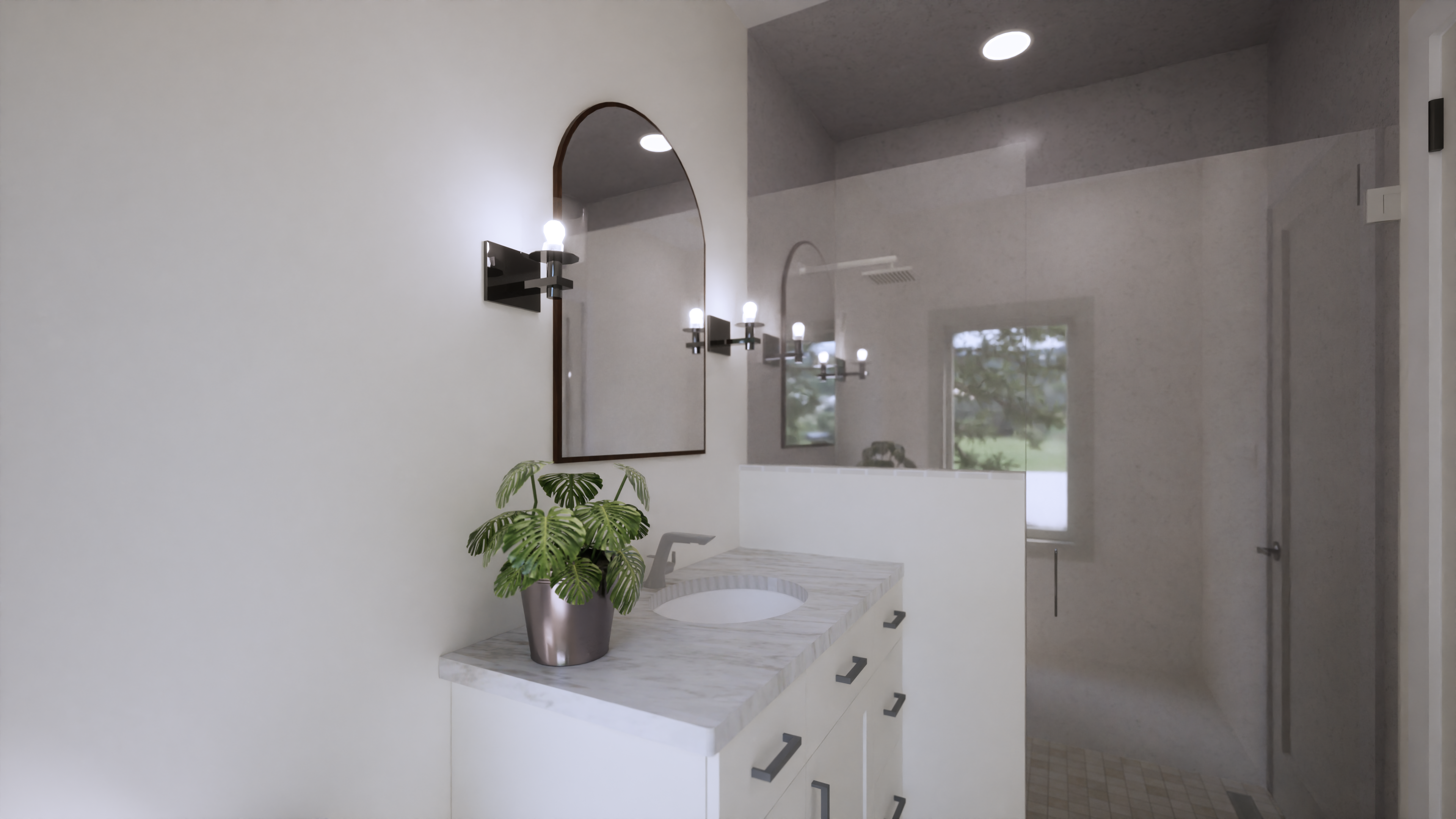 For added convenience, the Magnolia Ranch can be customized by extending any of the hip roof ends – the garage side, the bathroom side and the fireplace wall in the primary bedroom.