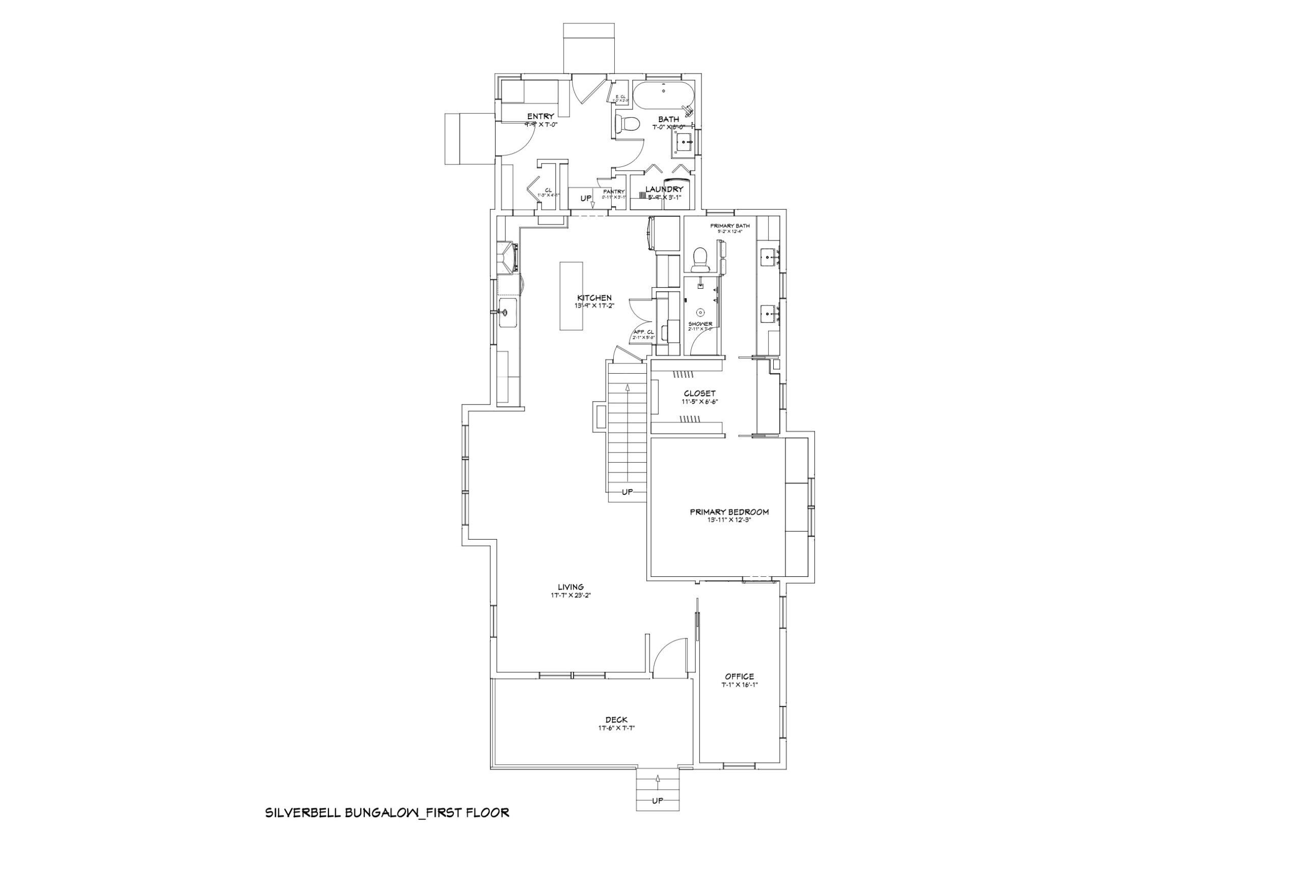 This small yet efficient home is perfect for narrow lots and even better in a relatively urban area. The front door is accessed from a sweet and functional covered front porch. The living, dining and kitchen all line up along the left side of the house from the front to the back of the house. On the other side of the first floor is an office then a primary suite with a walk-in closet and beautiful bathroom. There is a mudroom off the back of the house with access from the driveway, back patio, kitchen and bathroom. There is a full bathroom with free-standing tub and laundry closet.
