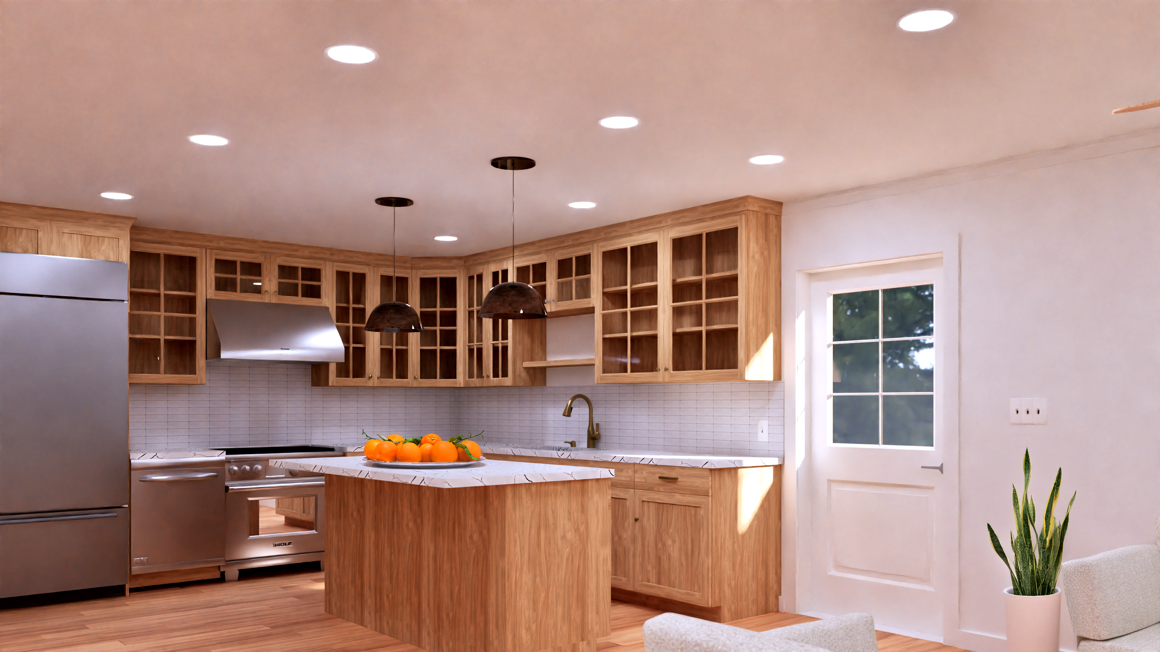 The plan is perfect for a developer in an urban area but still has plenty of land for this large footprint. The materials are kept modest, interesting, and artistic with fun lighting and colors.
